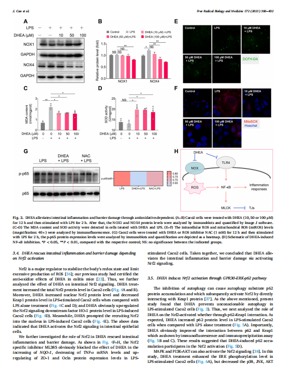 【文獻標題】Dehydroepiandrosterone alleviates intestinal inflammatory damage via GPR30-mediated Nrf2 activation and NLRP3 inflammasome inhibition in colitis mice