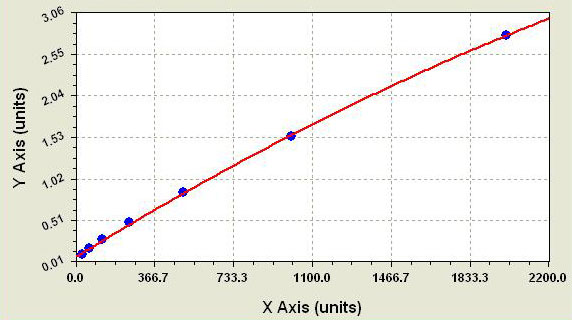 可以采用各種繪圖軟件來繪制ELISA標(biāo)準(zhǔn)曲線,我公司以“Curve Exert1.3”軟件為例,繪制的ELISA標(biāo)準(zhǔn)曲線如下: